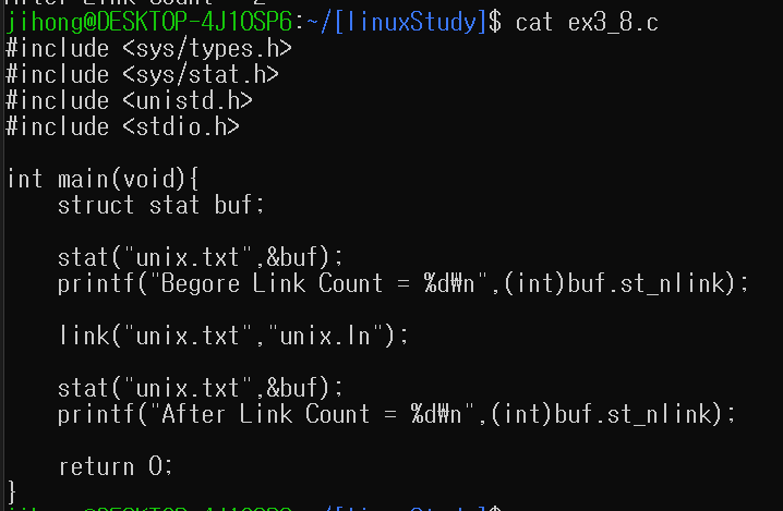 int link(const char *existing 기존 파일 경로, const char *new 새로 생성할 링크의 경로)