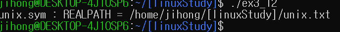 char *realpath(const char *restrict file_name 심볼릭 링크 이름, char *restrict resolved_name경로명을 저장할 버퍼 주소);