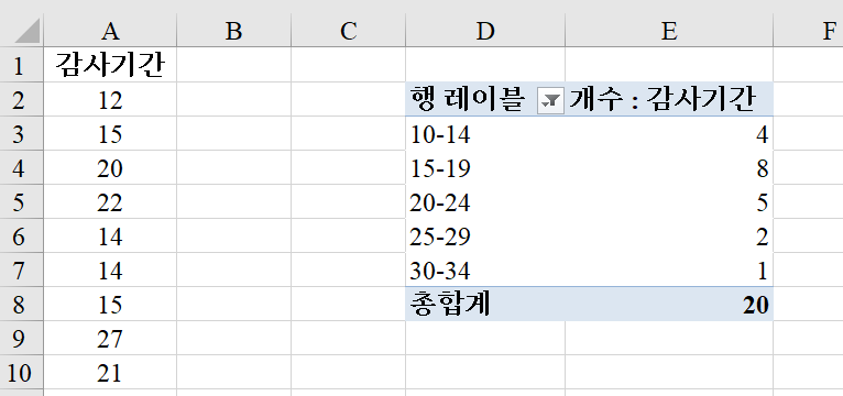 - 겹치지 않는 계급 수 결정->자료를 그룹하하기 위해 이용된 범위에 따라 결정.
