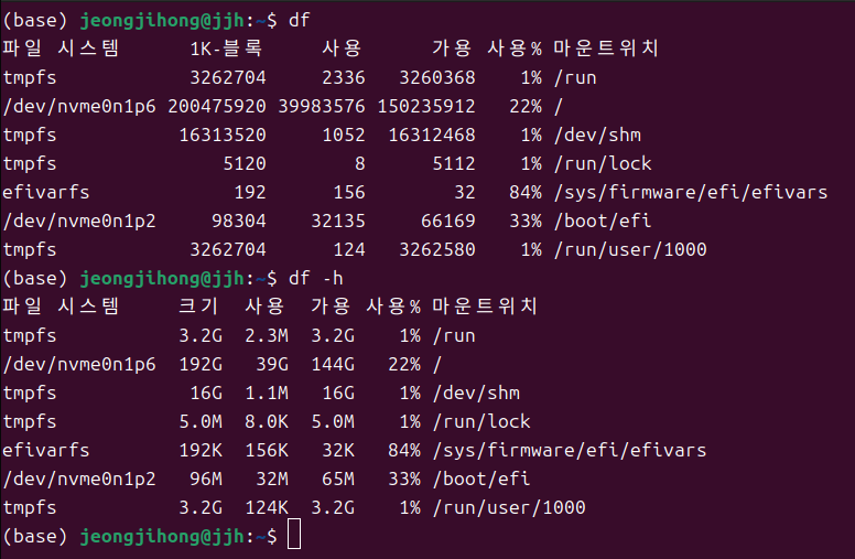 → 시스템 전체 마운트 된 디스크 사용량 확인