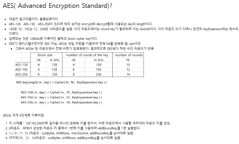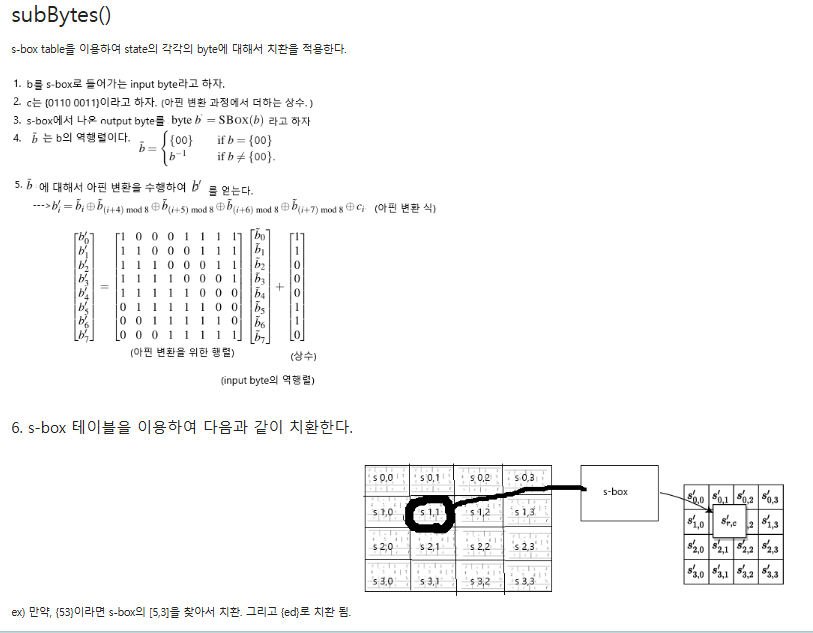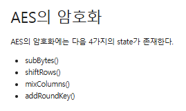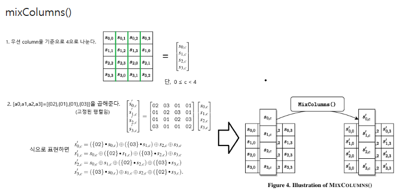 end for # 마지막 라운드이며 mixColumns를 제외하고 수행한다.