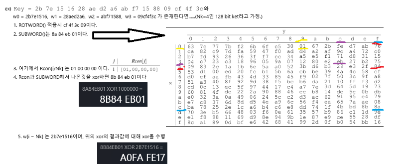 w[i] <- key[ 4*i..4*i+3 ] # 키에 대해서 4*1부터 4*i+3까지의 할당