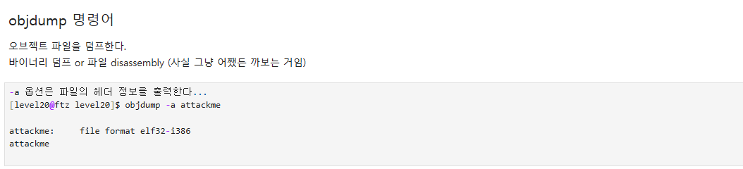 h는 섹션 헤더 정보 출력. 이를 통해 섹션의 이름 타닙 주소 크기 등을 확인 가능.