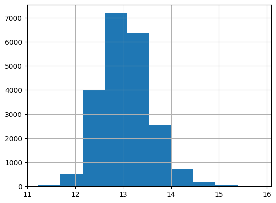 np.log(df['price']).hist()