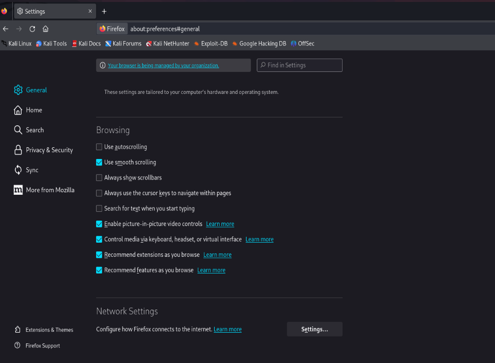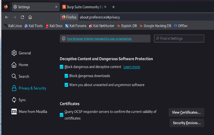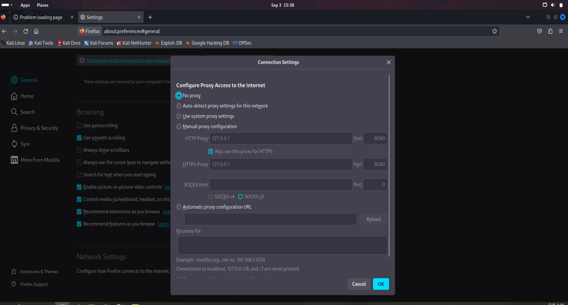 참고로 이렇게 설정후 버프 스위트를 끄면 아래와 같이 firefox로 인터넷에 접속이 안된다.