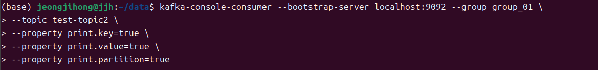 1. consumer명령어 실행시 그룹을 지정해줌.