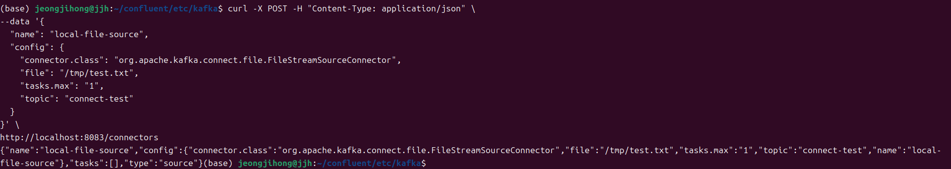 curl -X POST -H "Content-Type: application/json" --data '@jdbc-sink-connector.json' http://localhost:8083/connectors