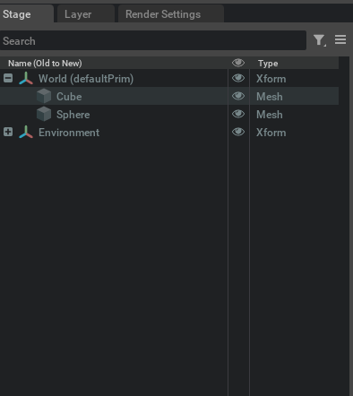 - stage는 트리 기반의 위젯이며, isaac sim의 scene의 구조를 아주 잘 나타내준다.