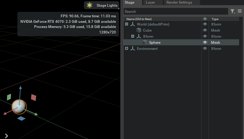 - 한번 Xform을 생성시켜보자. 그리고 아래서럼 Xform아래에 sphere를 넣어보자.(종속시키는것)