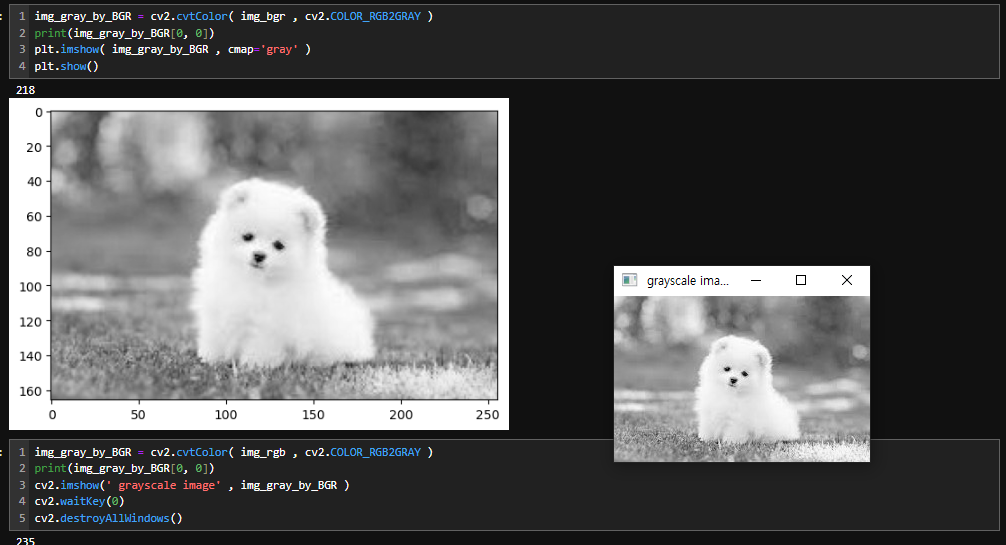- grayscale은 이미지에 대한 정보를 색상 정보가 아니라 명암 정보만 가지고 표현한다.