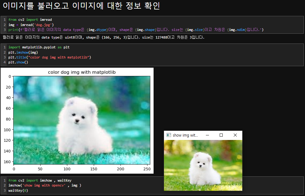 - 1. 다음은 opencv로 이미지를 읽어서 이미지를 출력한다.