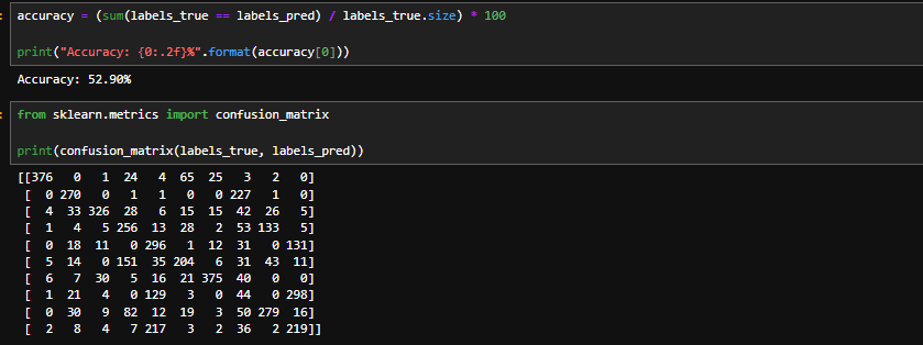 - 3. for문을 돌면서, 각 클러스터 번호에 i에 해당되는 예측된 라벨을 실제 라벨에 맞게 정렬