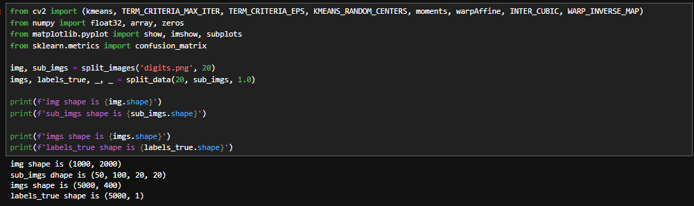 - 20 x 20 이미지이니 각각 픽셀들과 중심들의 거리 차이를 구할것이다. 그러면 총 1장당 400 x 10의 계산을 할것이며, 시도 횟수는 10이니 총 40000이다.