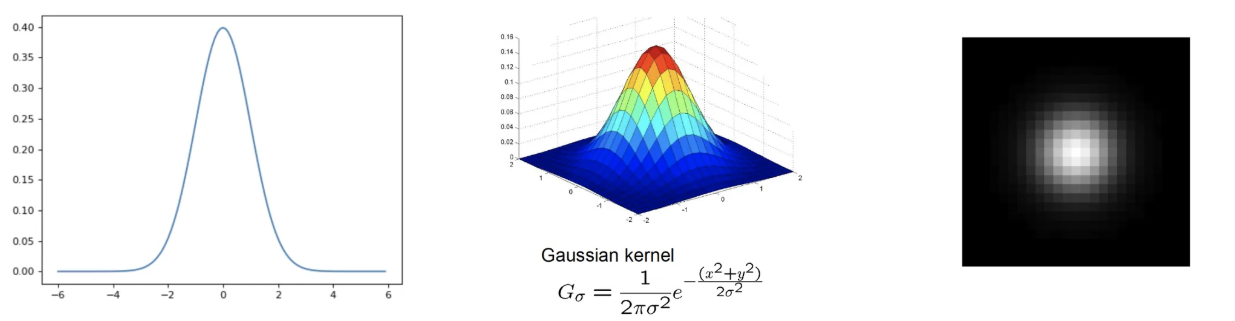 - 식1을 가지고 가우시안 필터를 만드는데, 가우시안 분포는 평균이 0이고 표준편차에 영향을 받는다. 표준편차가 커질수록 필터의 영향 범위가 넓어진다.