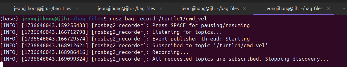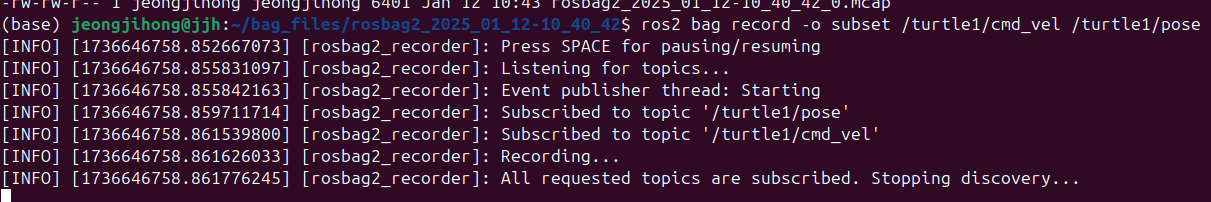 ros2 bag record -o subset /turtle1/cmd_vel /turtle1/pose