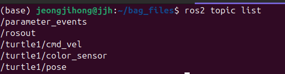 - ROS 2에서 bag 명령어는 ROS 2 system에서 topic과 service에 대한 data를 기록하기 위한 것이다.