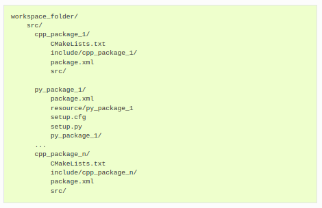 - 하나의 workspace 내에서 서로 다른 빌드 유형(CMake, Python 등)의 패키지를 함께 사용할 수 있다. 하지만 중첩된 패키지는 허용하지 않는다.