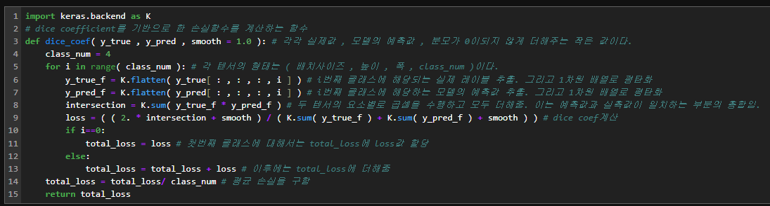 # dice coefficient를 기반으로 한 손실함수를 계산하는 함수