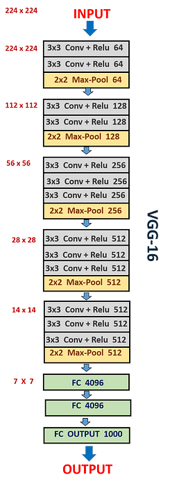 | 입력 | 224 x 224 x 3 | conv 3x3 + ReLU |