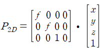 - 위의 투영 관계를 행렬로 표현하면 아래와 같다.