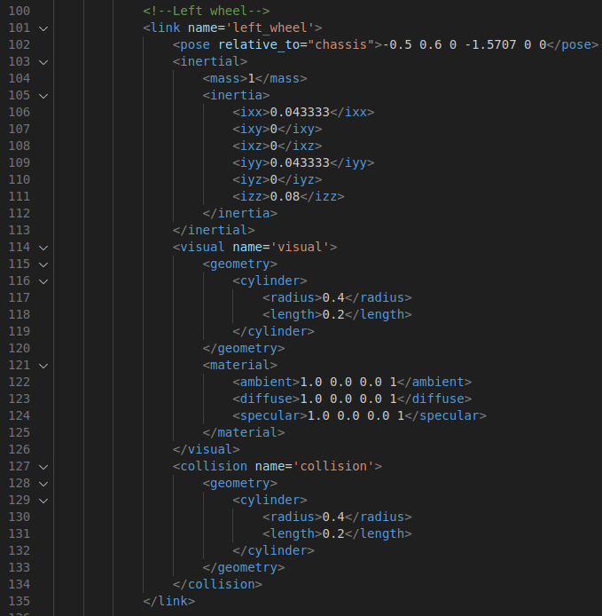 - canonical_link은 모델 내에서 주(link)로 취급할 링크를 지정한다. 여기에서는 chassis링크가 차량의 기준 링크가 됨을 의미한다.