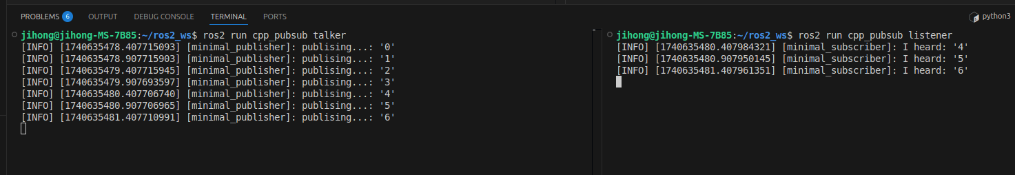 - colcon build --packages-select cpp_pubsub