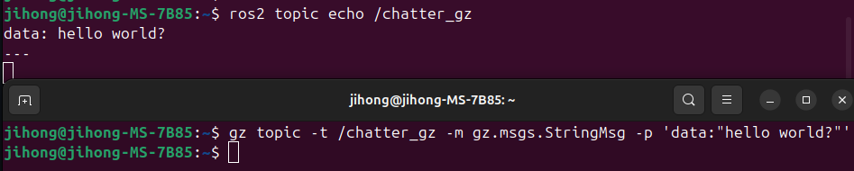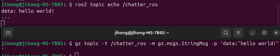 ros2 run ros_gz_bridge parameter_bridge /chatter@std_msgs/msg/String@gz.msgs.StringMsg