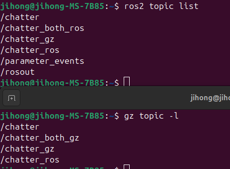- cmd상에서 bridge를 띄워두고, ros2는 listner역할 , gz는 talker역할을 해볼것이다.