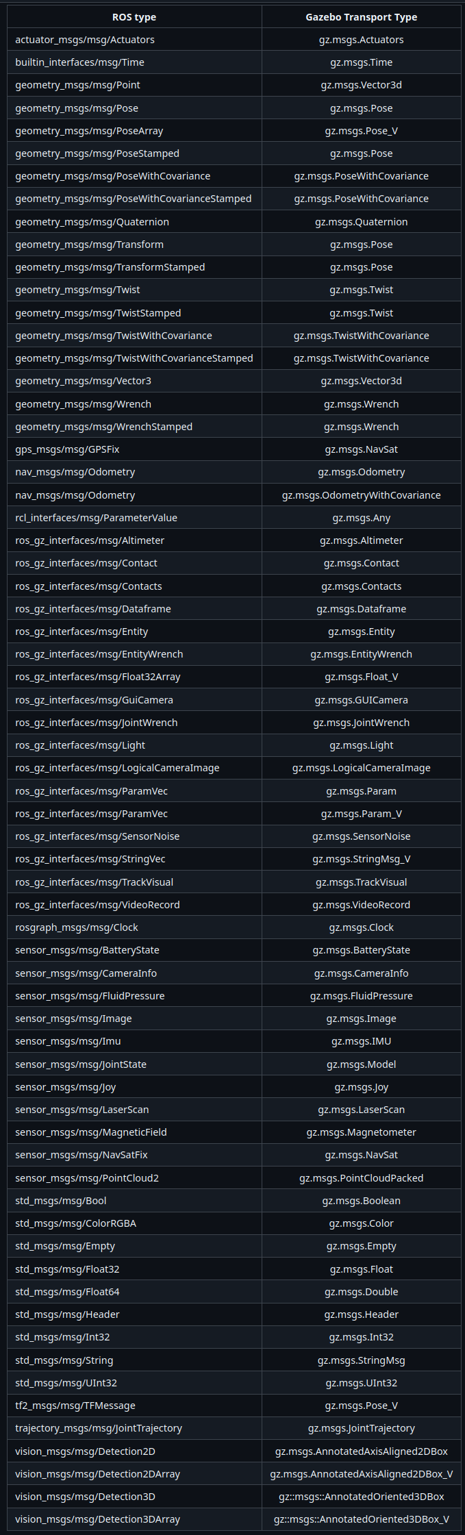 - ros_gz_bridge는 ROS2와 Gazebo Transport간의 메시지 교환을 가능하게 해주는 network bridge이다.