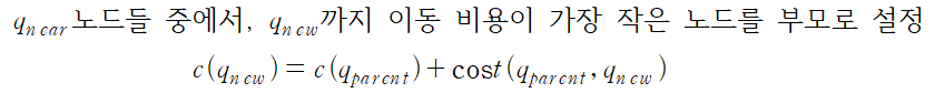 - 1. cost function을 적용 : 새로운 sampling point를 단순히 부모 노드에 연결하는 것이 아니라, 주변 노드중에서 최적의 부모를 선택