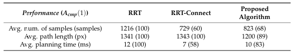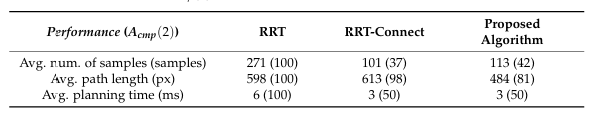- 제안된 알고리즘은 경로 길이 면에서 RRT-Connect 알고리즘보다 효율적임을 보인다.