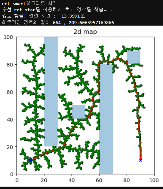 print(f'informed RRT에서 최초 경로를 찾음! 걸린 시간 : {end_time - start_time: .4f}초')