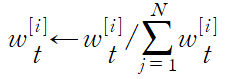 - 모든 파티클의 가중치의 합이 1이 되도록 정규화한다.