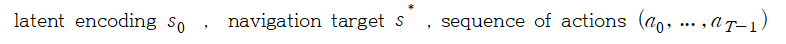 - 형식적으로 latent encoding s_0과 내비게이션 목표 s*주어진다.
