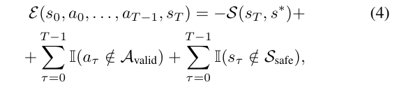“절벽 가장자리는 절대 탐색하지 마(never explore the edge of the cliff)” 같은 제약은 해당 상태 s_ 가 S_safe 안에 있도록 함으로써 표현할 수 있다. - II 는 indicator function으로, 어떤 행동 제약 또는 상태 제약이 위반되면 큰 페널티를 부여한다.