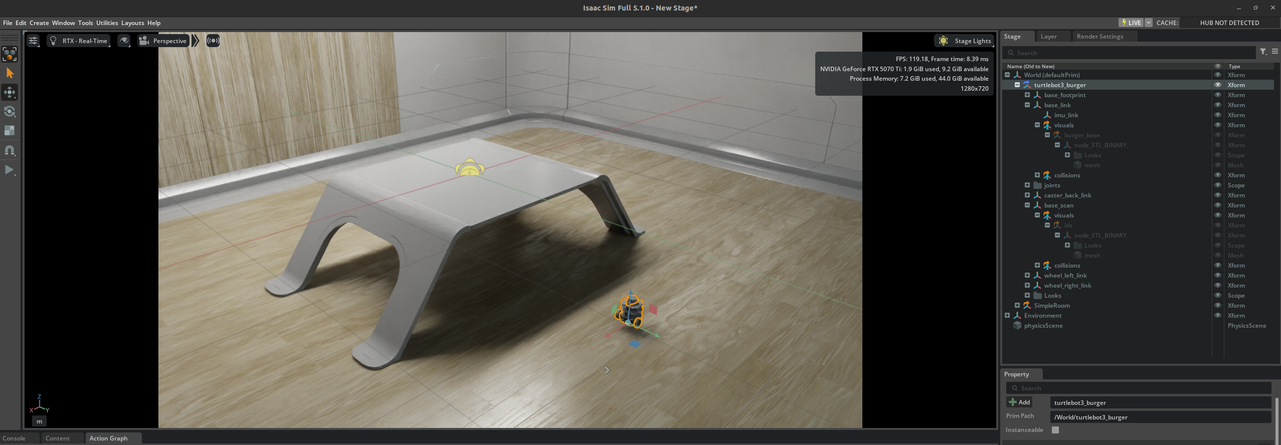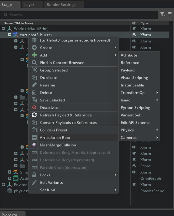 10. turtlebot의 최상단에 articulation root를 추가