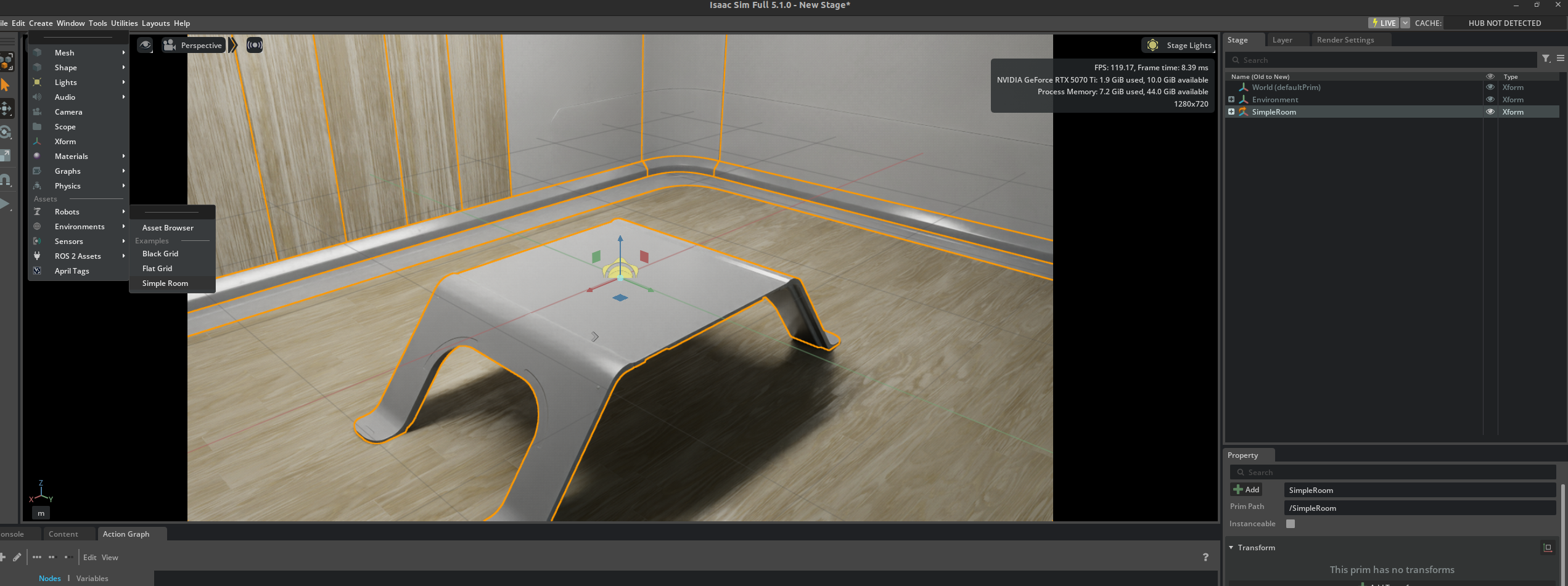 4. 그러면 Isaac Sim의 timeStamp가 1.2로 변경될거임.
