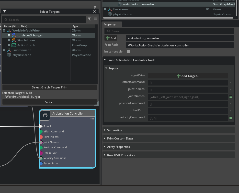 11. articulation controller에서 target prim을 turtlebot3로 해준다.