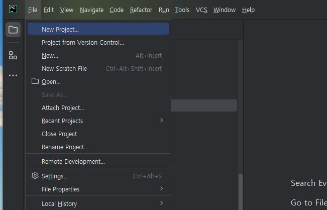 3. 새 프로젝트 생성후 Settings/Preferences → Project → Python Interpreter에서 venv가 선택되어 있는지 확인