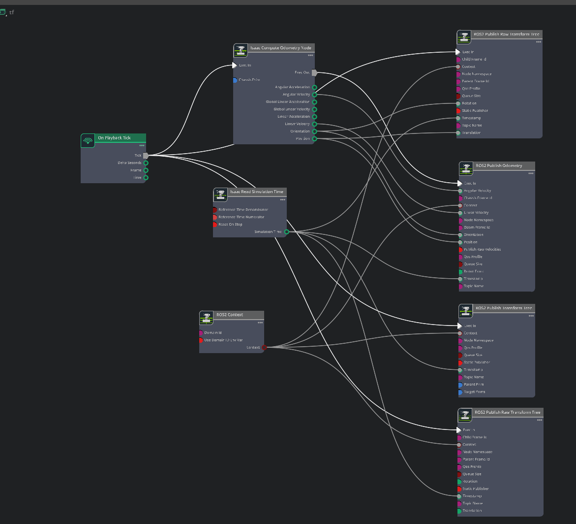 - ==> ROS2 Publish Transform Tree 노드의 targetPrims 필드에 "로봇의 articulated root"를 추가하면 된다.