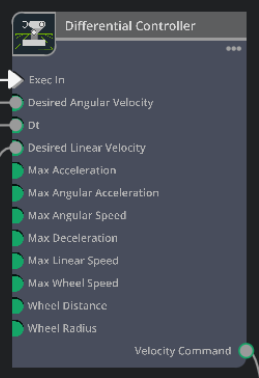 - velocity command : 계산된 휠 속도 명령(좌/우) 같은 형태로 나간다. 보통 다음 단계의 "바퀴 조인트에 속도 적용:노드로 연결함