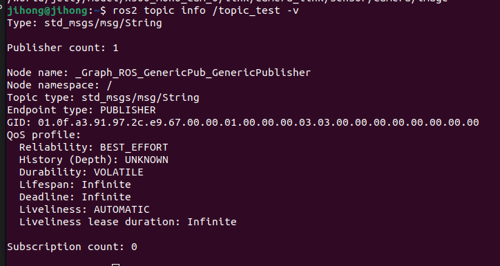 8. 그리고 그래프에서 생성한 노드의 토픽에 대해서 info를 봐본다.