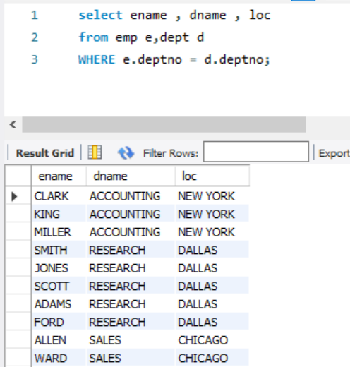 - inner join:두 테이블의 일치되는 튜플만 표시