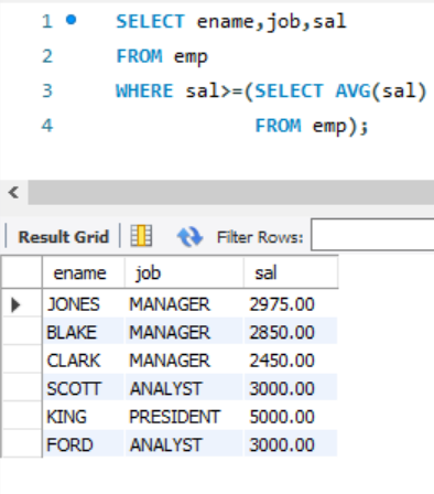 다중 값 서브쿼리:중첩 SQL에서 여러개의 값을 도출함