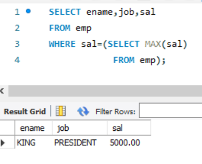 단일 값 서브쿼리: 중첩 SQL에서 하나의 값을 도출함