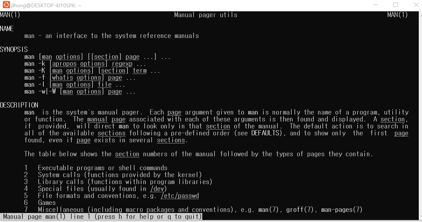 PS(1)에서 숫자 1은 섹션1에 속한다는 것을 알려준다.