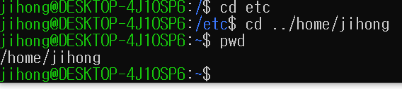 pwd: 현재 디렉토리 경로 출력 (print working directory)