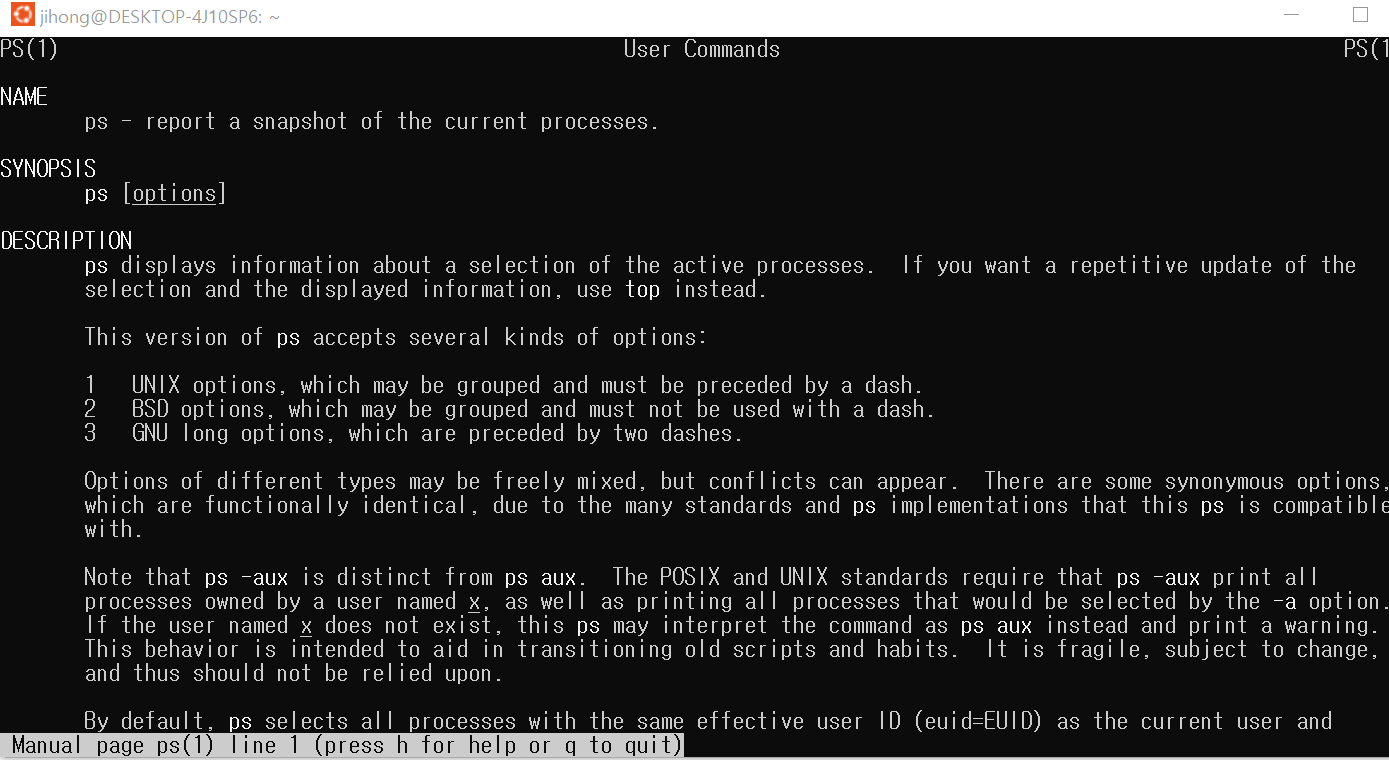 ps 현재 컴퓨터에 돌아가는 프로세스