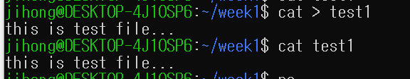 cat > [새 파일명] : 입력한 내용을 새 파일로 저장합니다. Ctrl+D로 입력 종료