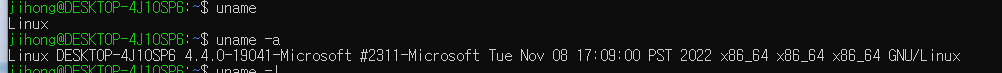 -os의 이름,버전,호스트명,하드웨어 종류 등 검색.